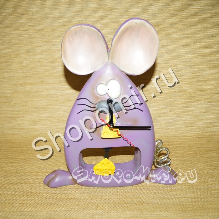 | Настольные часы выполнены в образе мышки, маятник выполнен в виде сыра. |