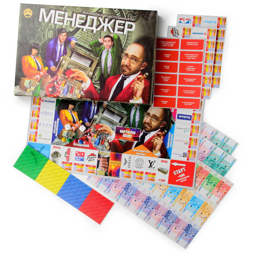 Игра «Менеджер» большая – одна из версий популярных настольных бизнес-игр, которые любят вне зависимости от возраста и профессии. Здесь всё как в реальной жизни: игроки стараются как можно быстрее сколотить состояние и не упускают шанса обанкротить ближнего своего.