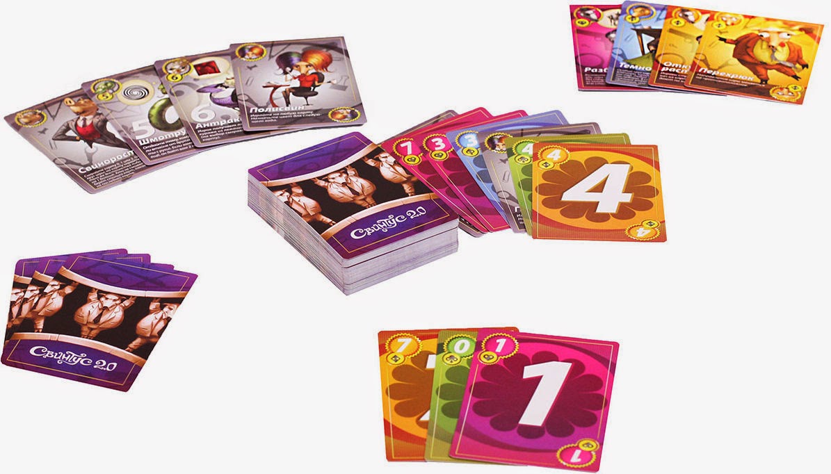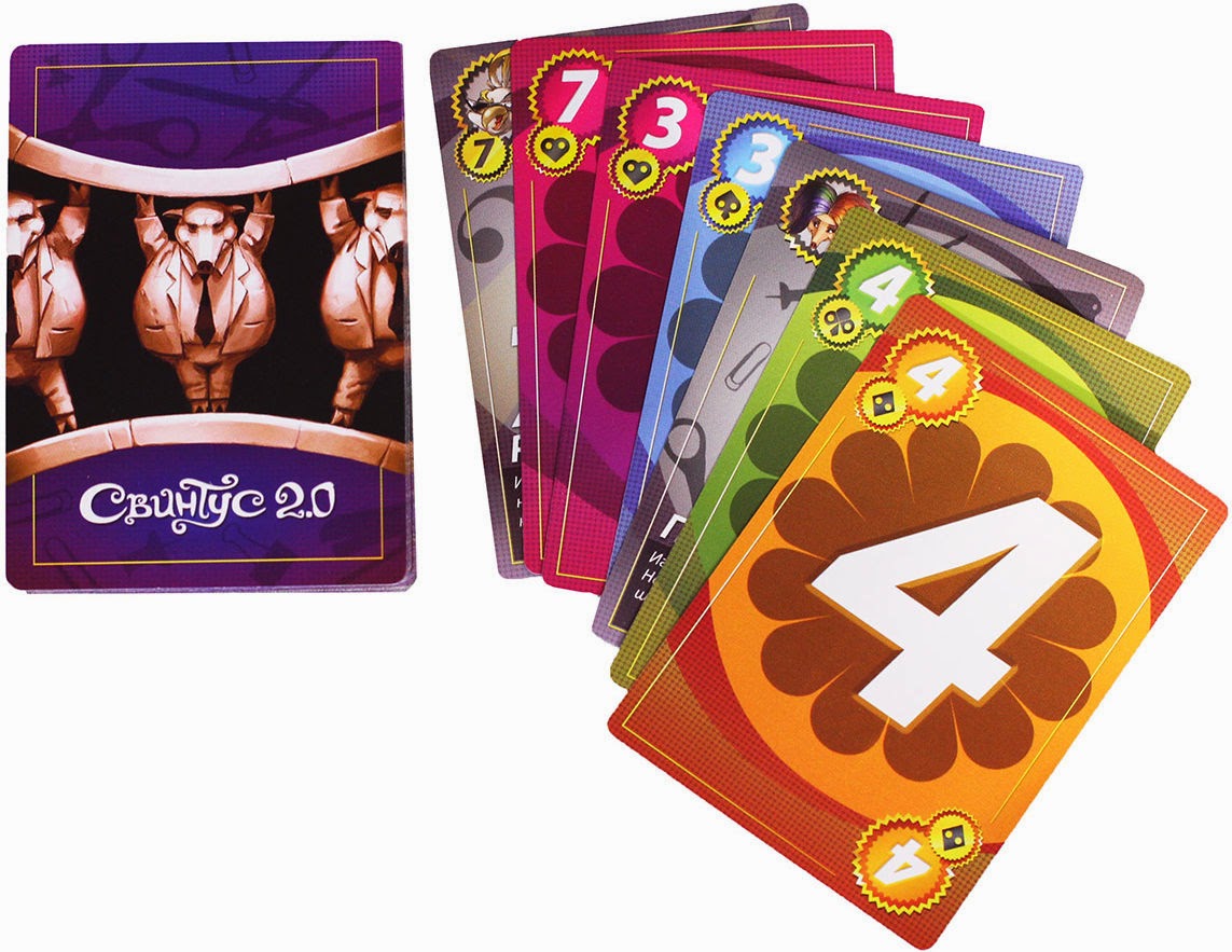 Карточная игра «Свинтус 2.0» - это логическое продолжение предыдущей версии, с которой все уже ознакомились и сделали выводы о том, насколько это весело и интересно. Правила прежние: нужно постараться побыстрее избавиться от карт, причём так, чтобы каждая выброшенная карта сочеталась с предыдущей цветом или достоинством. Новый «Свинтус» открывает перед вами абсолютно новые возможности.