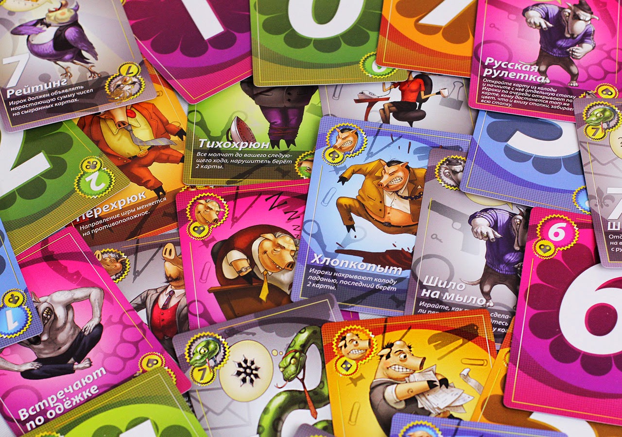 Партия длится примерно 10-20 минут, ведь в ней самое главное – это динамика. Тот, кто зазевался, сразу же берёт карту и пропускает ход. Карточная игра «Свинтус 2.0» придётся по душе любой компании, вне зависимости от возраста и должности!