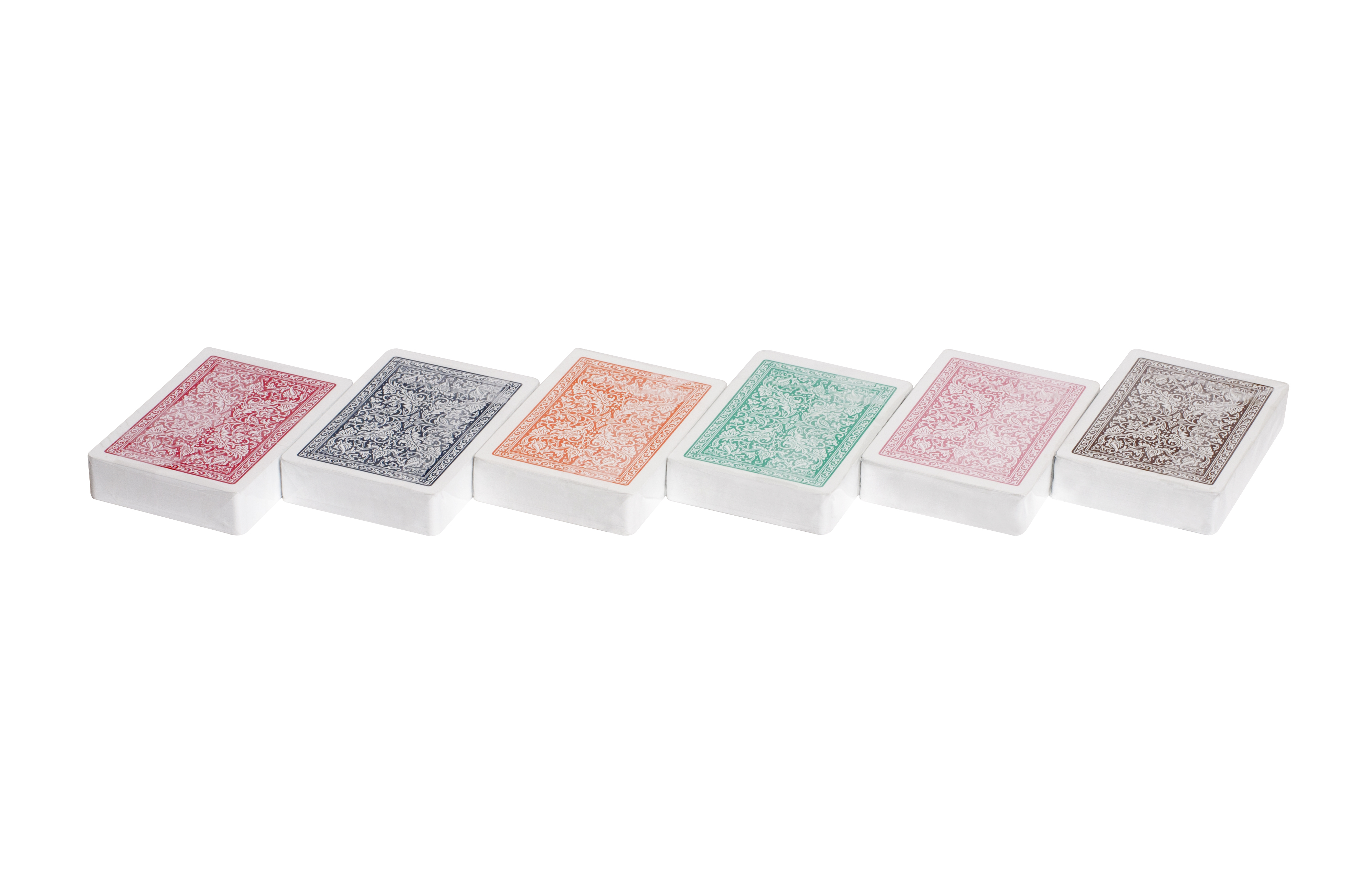 Карты несколько шероховаты, благодаря чему они не скользят в руке и между собой, но при этом – не слипаются друг с другом, поэтому легко поддаются тасовке. Пластик не боится воды, поэтому карты можно беспрепятственно мыть, даже после каждой игры. Покрытие карты не истирается со временем, поэтому они всегда выглядят как новые.