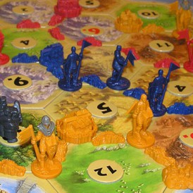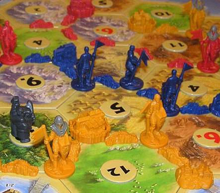 Что же привносит в игру это дополнение? Прежде всего игроки начинают стартовать с большим количеством ресурсов, а побеждает тот, кто смог добраться до 13 очков. В игру вступает дополнительный ресурс – так называемые, товары, которые пригодятся для строительства некоторых объектов.