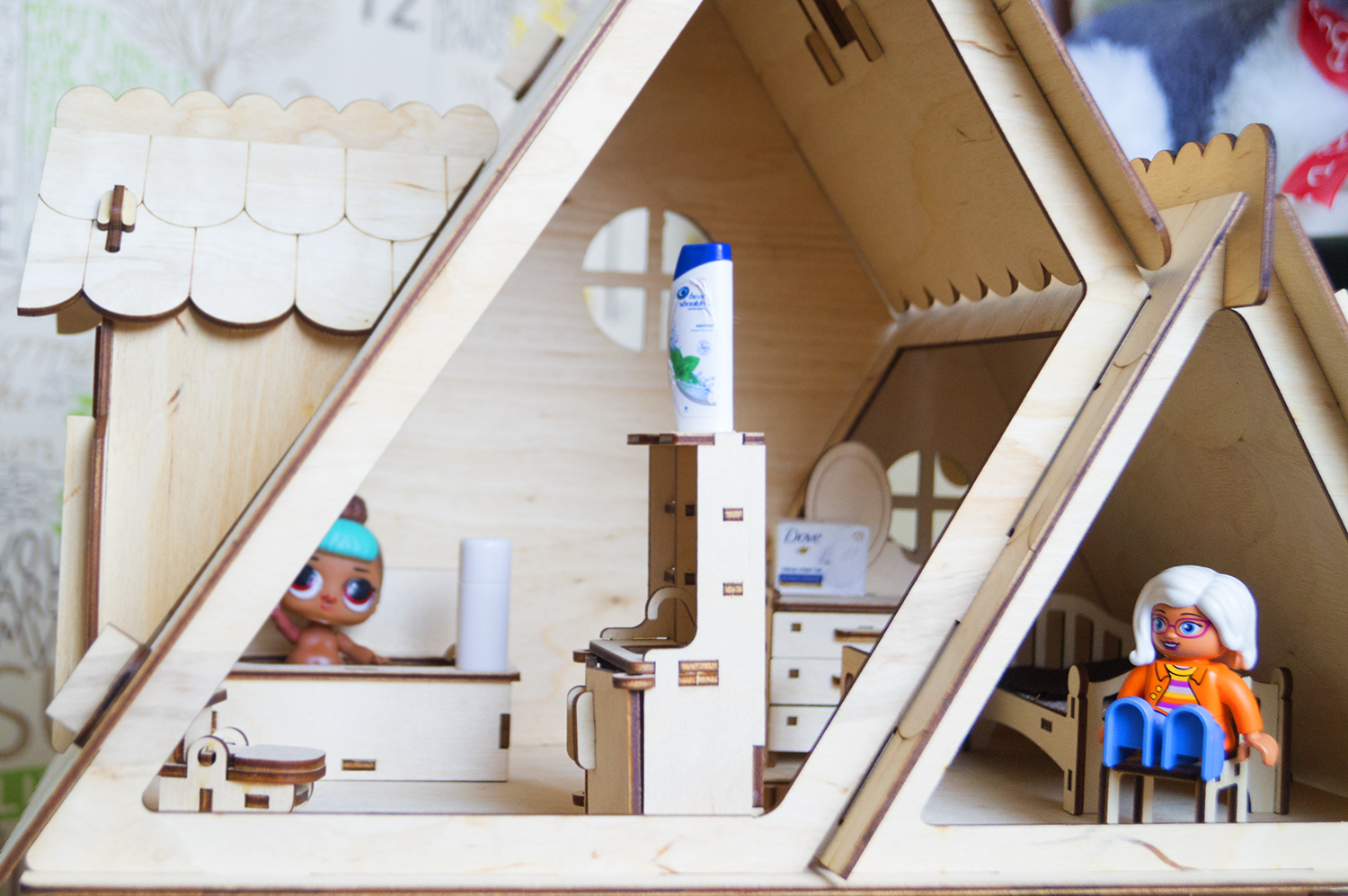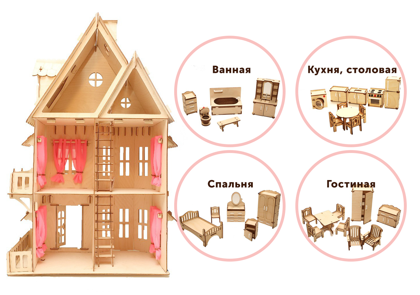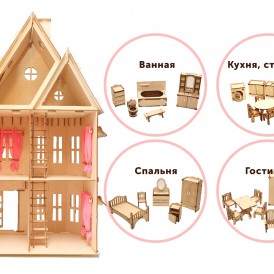 Кукольный дом из фанеры для принцессы с мебелью 4 шт