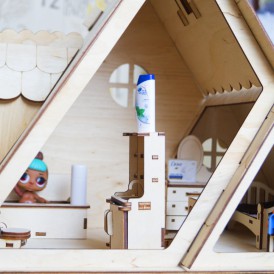 При сборке детали соединяются между собой, как конструктор в пазы. После сборки дом можно покрасить или покрыть лаком и даже поклеить обои, прекрасное "поле" для творчества.