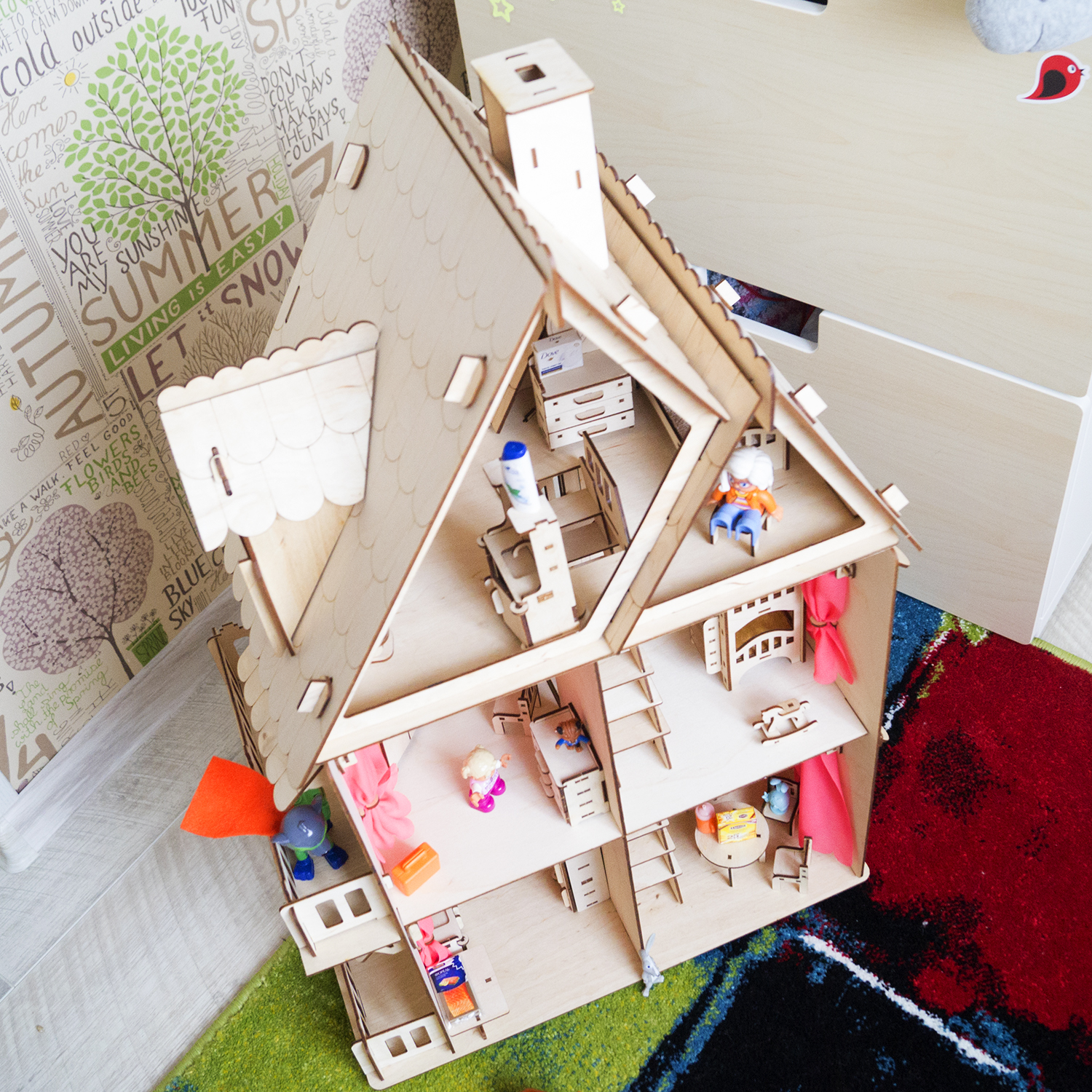Высота каждого этажа: 21 см, что позволяет свободно играть ручками в доме.