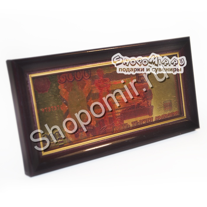 Золото. О нем слагались в древности легенды, за его обладание отдавали жизнь, оно и сегодня ценится превыше всего и является неким критерием благосостояния. Неудивительно, что симпатичная картинка может стать ценным даром для увлеченного человека. Безделица представлена в форме денежного знака достоинством в пять тысяч рублей, облачена в изящную, но довольно лаконичную рамку.