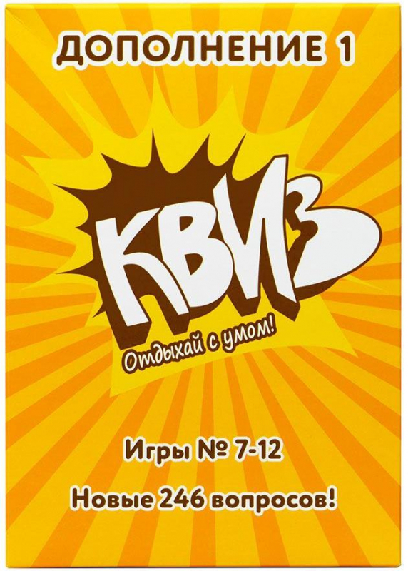 Вы можете купить товар «КВИЗ дополнение 1» в Химках по цене 990 рублей в интернет-магазине Shopomir. КВИЗ дополнение 1: характеристики, отзывы покупателей, фотографии. Широкий выбор в каталоге "Игры для компаний". Самовывоз, доставка в Химках и по России.