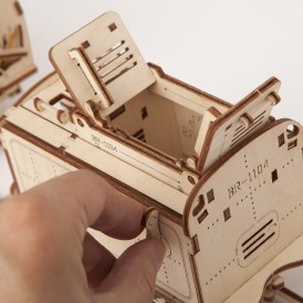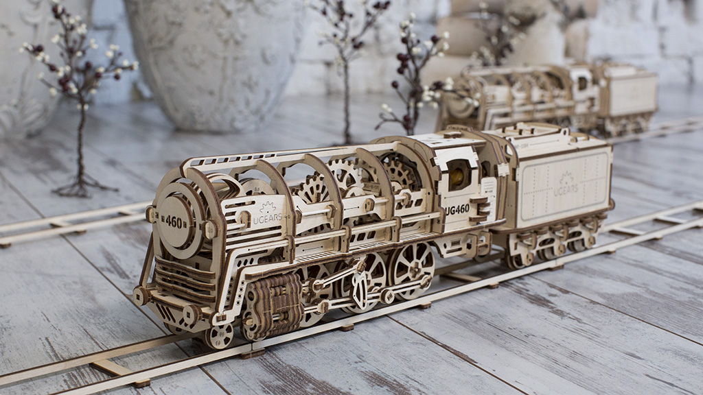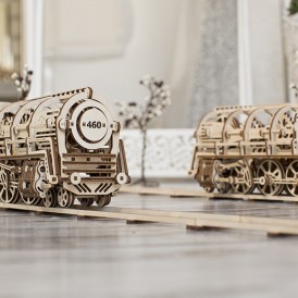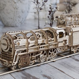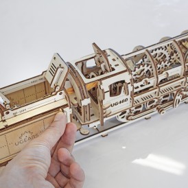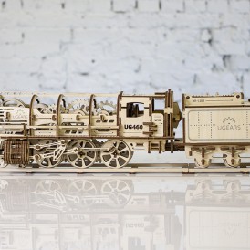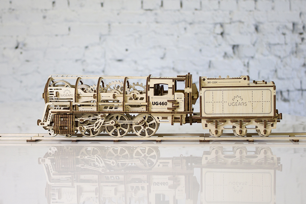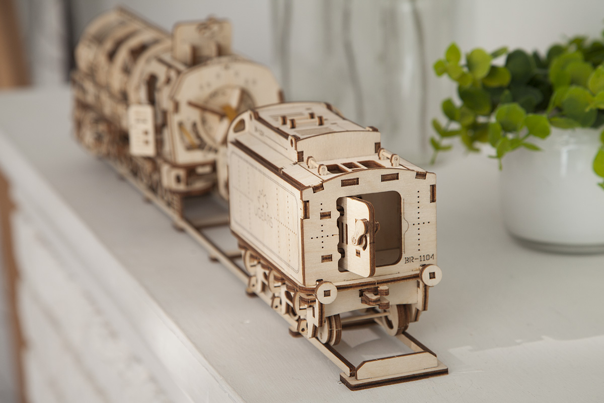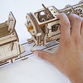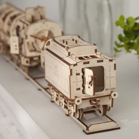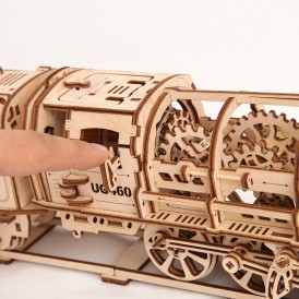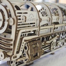 Деревянный конструктор локомотив с вагоном – самая подробно проработанная модель среди конструкторов UGEARS, со своей механикой. Вы сможете увидеть работу двигателя в полной мере. Элементы мотора, работу поршней видно через открытую крышку локомотива.
