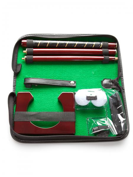 Чтобы свой досуг провести весело и со смыслом, чтобы обеденный перерыв на работе не был тривиальным нужно совсем немного – набор для гольфа! Мини-гольф – это прекрасная альтернатива профессионального гольфа. Такая игра придётся по душе абсолютно каждому человеку. Такой набор для мини-гольфа очень удобно брать с собой, ведь вес его не достигает даже одного килограмма. В специальной сумке находится всё необходимое: 2 мячика, сборная клюшка и лакированная лунка из дерева. В нашем интернет-магазине мы предлагаем Вам