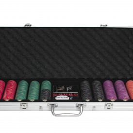 Этот превосходный набор для покера на 500 фишек включает в себя все главные атрибуты игры: фишки с номиналами, имеющие оригинальный фирменный дизайн, 2 колоды карт из 100% пластика, а также игральные кости, фишку дилера и удобный кейс, закрывающийся на ключ. Такой покерный набор, без сомнения, оценит каждый любитель этой популярной азартной игры!