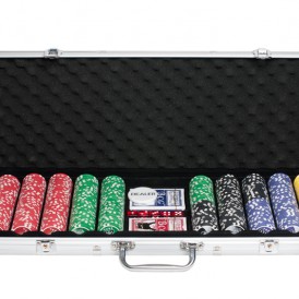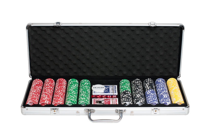 Этот набор для покера на 500 фишек включает качественные фишки с номиналами, а также другие игровые предметы: карты, игральные кости, фишку дилера. Все это упаковано в стальной кейс с ключами.