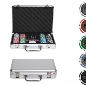 В набор для покера Ultimate входят фишки разных номиналов, игральные кости, 2 колоды качественных пластиковых карт, а также фишка дилера. Весь покерный набор удобно упакован в красивый стальной кейс с ключами, вес которого составляет чуть больше 4 кг.