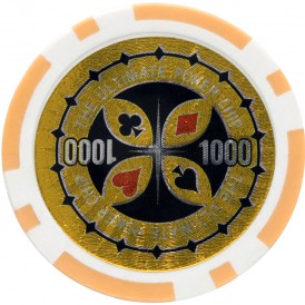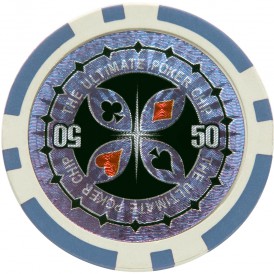 Вес фишки - 14гр. Вес фишки обеспечивается металлическим сердечником. Такая фишки приятно лежит в руках. Углубление под наклейку защищает фишку и изображение от стирания. Спустя годы фишка будет выглядеть как новой.