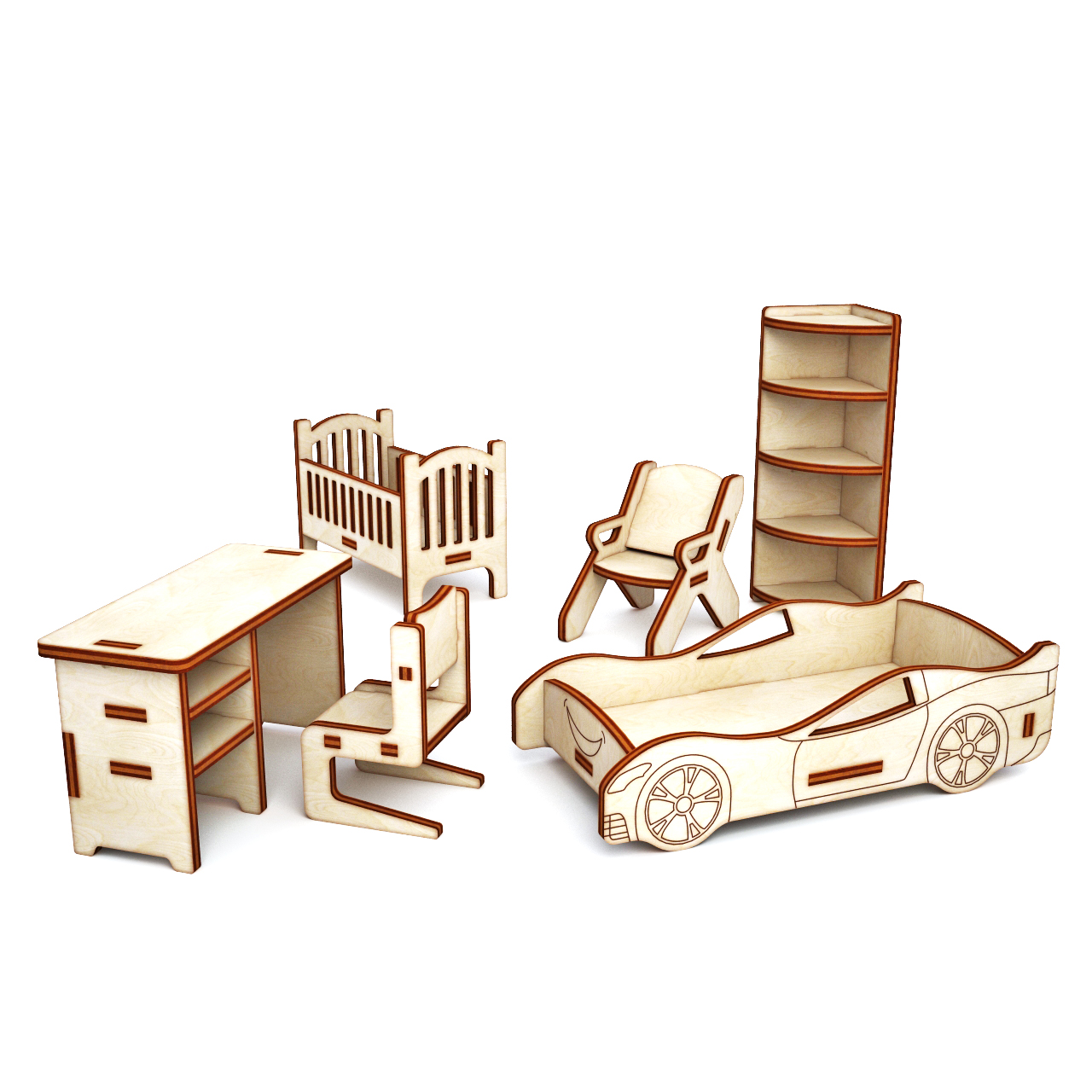 Все элементы выполнены из фанеры, 3 мм. Отшлифованы, без острых углов. Экологически чистый материал: березовая фанера