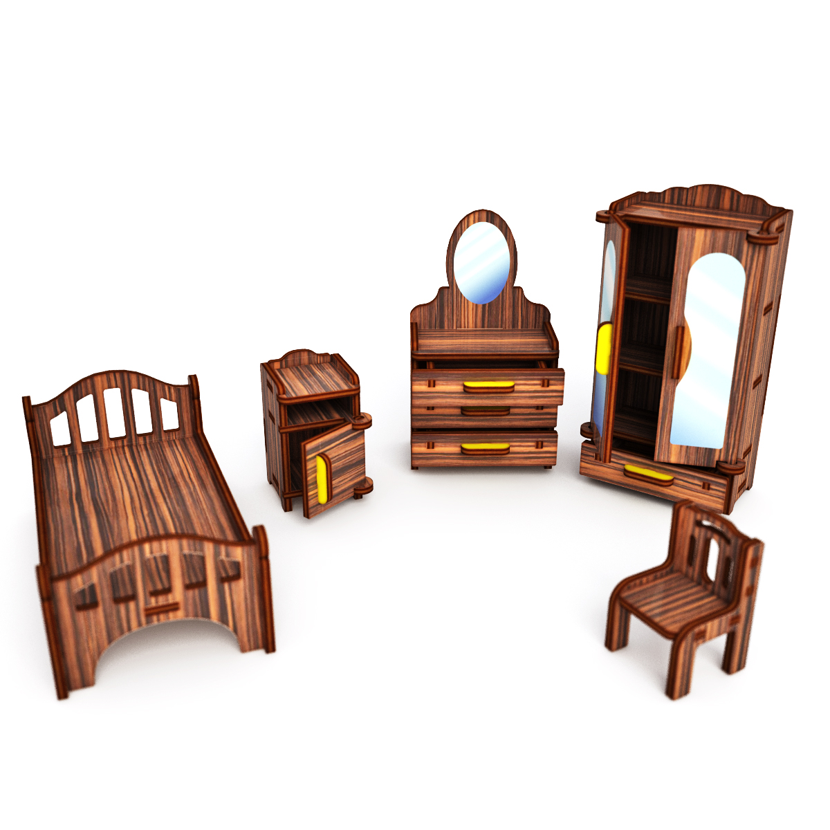 Дополни домик красивой мебелью. Набор спальня состоит из 6 предметов. Домик для принцессы будет еще уютнее, если его украсить такой раскрашенной мебелью.