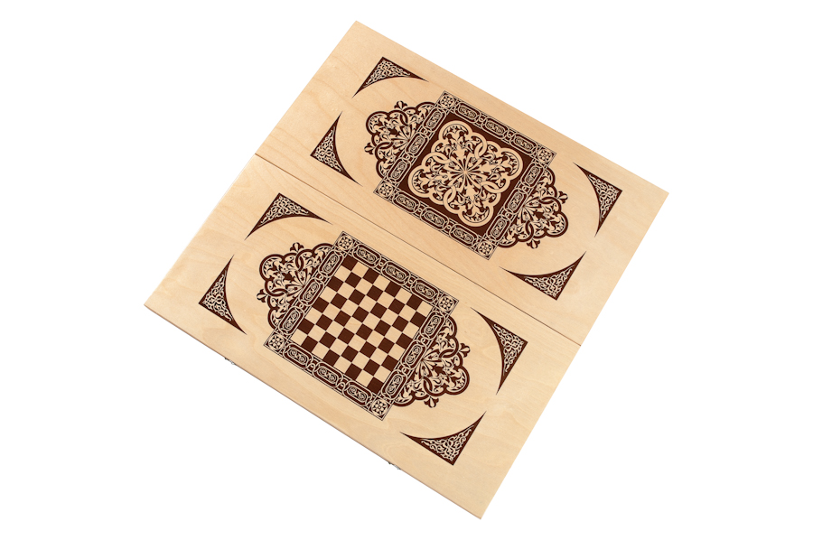 изготовлен из натурального дерева, на крышках – изящный орнамент. Нарды имеют
