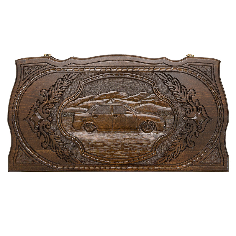 Своим внешним видом Нарды резные Лада Седан также удивляют – внимание уделено даже мельчайшим деталям. Первое, что видит купивший человек – лицевая сторона, на которой изображена, уже знакомая по названию, машина. Причем выполнена она способом ручной резки, без использования современных механизмов и технологий. С боков она окаймлена ветками с листьями. С обратной стороны имеется поле для игры в шашки, размером 8х8 клеточек, которое позволит отвлечься от напряженных баталий и расслабиться.