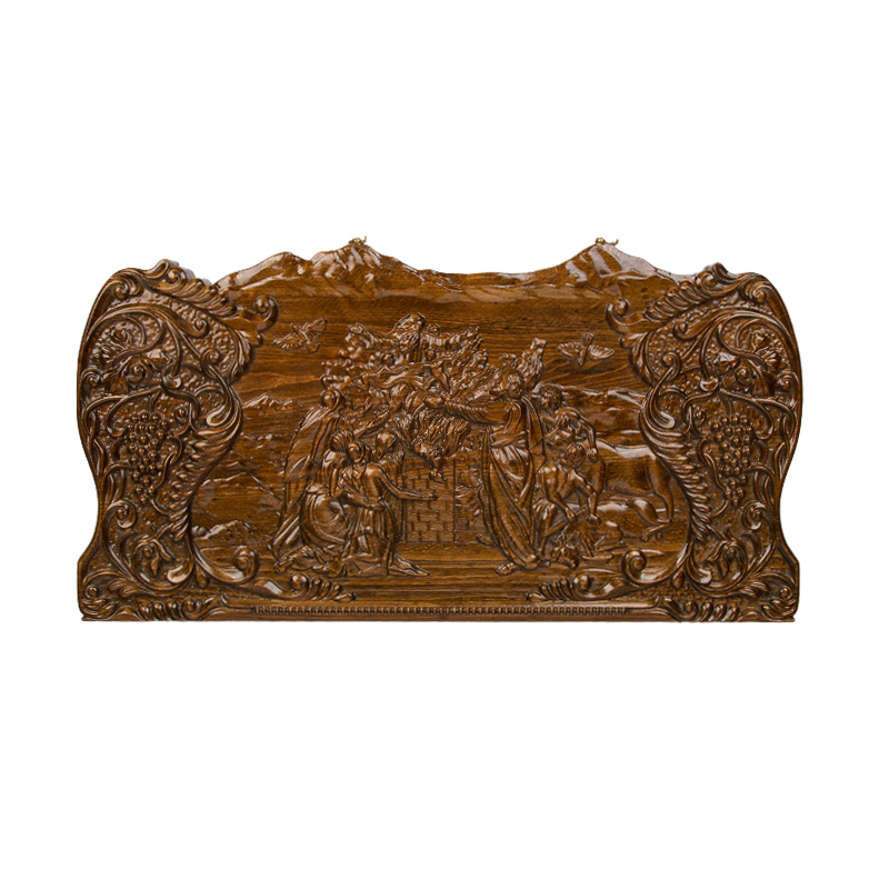 Доска украшена изысканным узором с изображением истории о Ноевом Ковчеге. Резьба выполнена вручную, смотрится очень богато и изысканно.