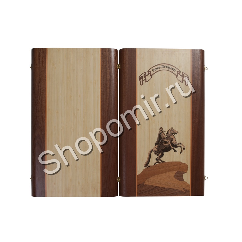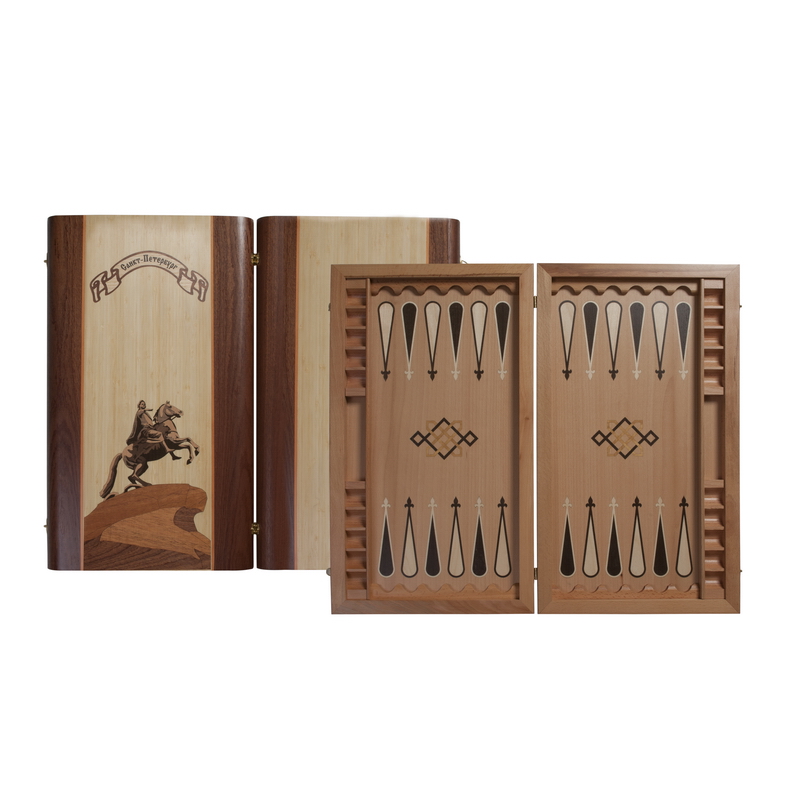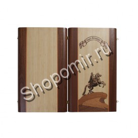 Нарды Сенеж «Пётр Первый» - коллекционное издание игры. Доска выполнена из массива бука. Её внешняя сторона украшена изображением знаменитого Медного всадника, которое по цвету прекрасно сочетается с обрамлением из тёмного дерева.