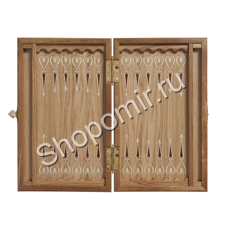 Нарды Сенеж «Русский узор» мини выполнены из редкой породы дерева – северо-кавказского дуба. Изящная структура дерева прекрасно сочетается с простым геометрическим узором, который украшает внешнюю поверхность доски. На игровом поле есть специальные лузы для компоновки фишек перед игрой. По краям расположены два отдела для хранения фишек. Благодаря им комплект удобно хранить и перевозить, не опасаясь поцарапать поверхность дерева.