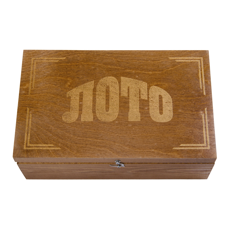 Нет ничего лучше, чем коротать долгие вечера в кругу семьи или друзей за интересной и веселой игрой в русское лото. Приобретая этот комплект, вы получаете все необходимое – бочонки, карточки, мешочек. Все это аккуратно укладывается в темный деревянный бокс, который позволяет сохранить набор, пока он не используется.