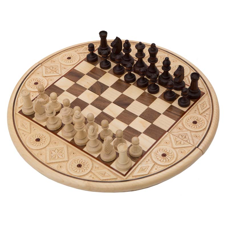 Очень привлекательная доска, где сразу в глаза бросается форма изготовления. Мы привыкли, что шахматы играют на квадратной доске, а здесь – круглая. Само поле осталось без изменений, поэтому можете не беспокоиться об изменении игрового процесса – всё по-старому.