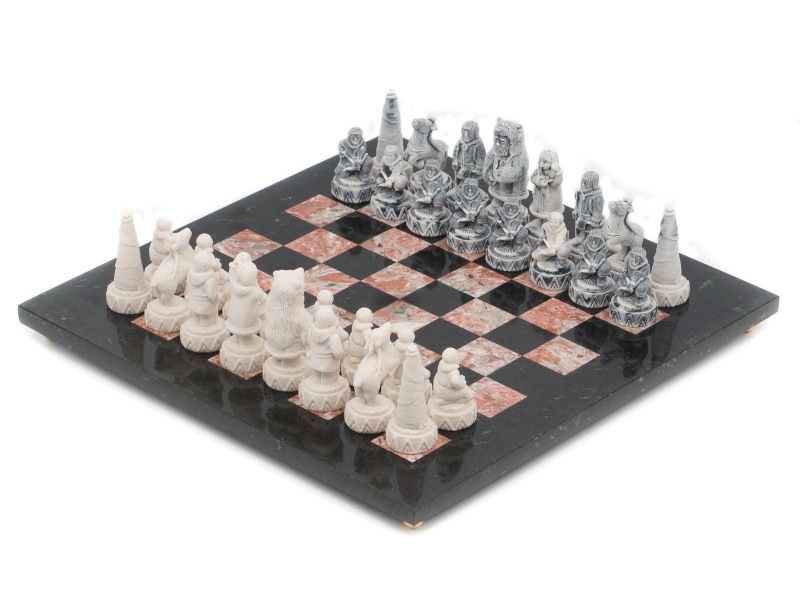 Шахматы "Северные народы" могут претендовать на звание настоящего произведения искусства. Безупречное качество исполнения, тонкая детализация фигурок, натуральные материалы – отличительные черты этого изделия. Настольная игра с многовековой историей, созданная из минералов, которым тысячи лет – это поистине оригинальный и дорогой .