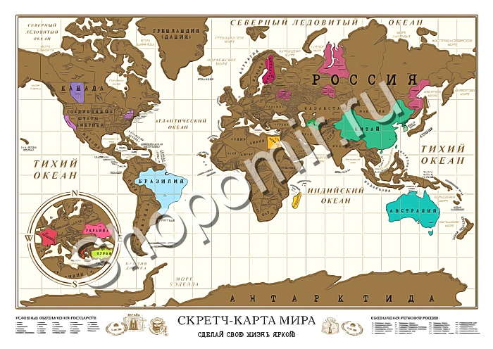 Характеристики и комплектация "Скретч-карта Покорение мира на русском языке с регионами" могут быть изменены фирмой-производителем без предварительного уведомления. Если вы заметили ошибку в описании, пожалуйста, сообщите нам по адресу info@shopomir.ru