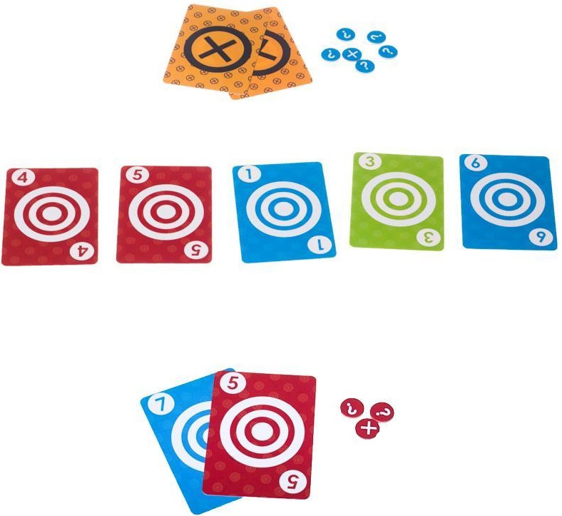 Двусторонних жетонов: 24 (по шесть жетонов четырех цветов)