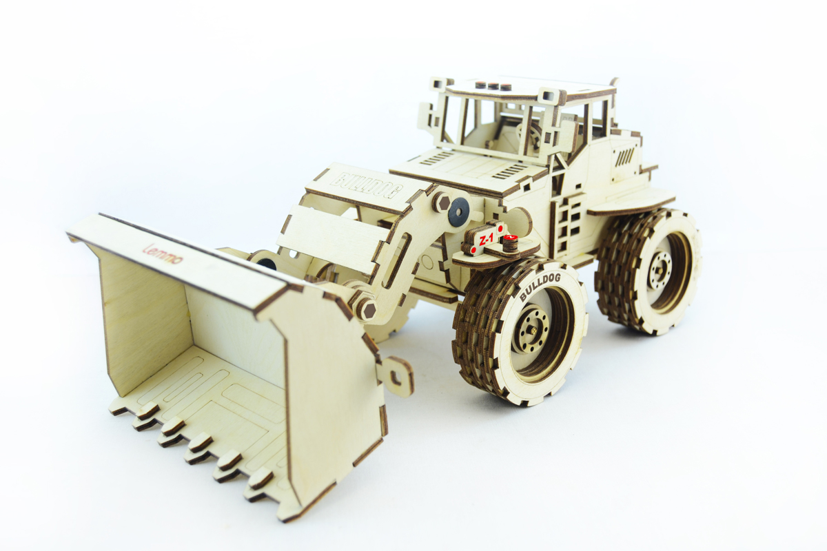 Конструктор для мальчиков Трактор Бульдог рекомендован для детей от 5 лет. У собранной модели вращаются колеса, поднимается и фиксируется ковш. Все детали выполнены из качественной древесины и имеют сильный насыщенный запах дерева.